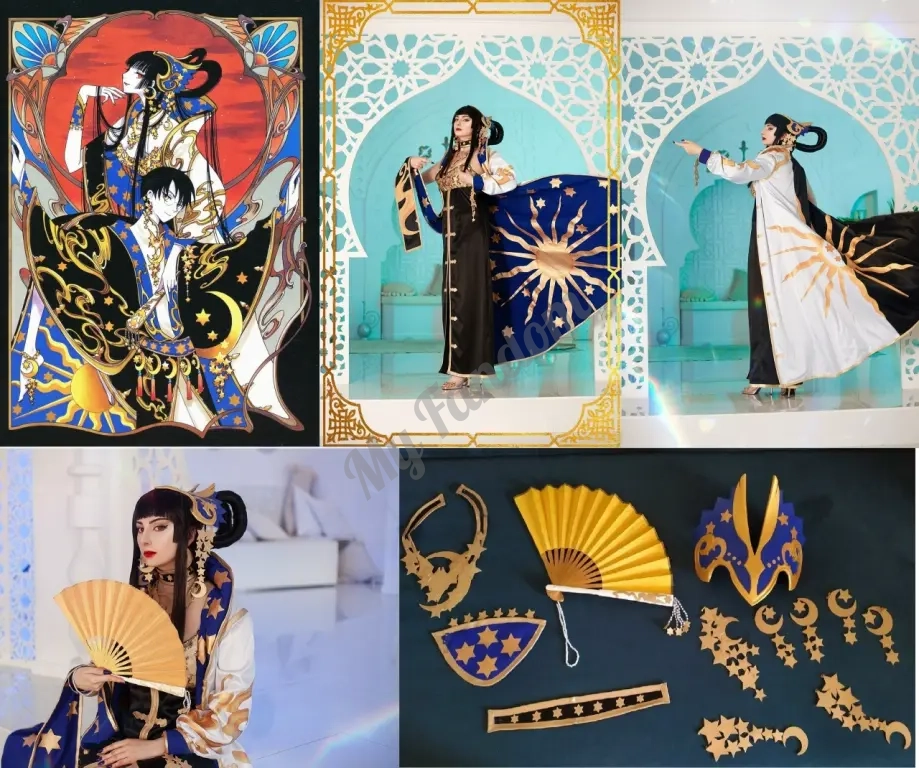 Юко Ичихара из XXXholic (Триплексоголик) по оф. арту Clamp. Размер L. Полностью ручная отделка, проф. пошив, очень дорого и богато смотрится. В комплект входят: платье с украшенным лифом, плащ с отделкой внутри и снаружи (узоры из искусственной кожи, роспись по ним акриловыми красками по ткани), корона 3D печать (роспись акрилом, вклеены магниты для крепления с париком), парик с укладкой от вигмейкера (с вшитыми магнитами), босоножки 39 размера (24.5 см по стельке), украшения (чокер, колье, браслет, серьги и др.), веер.