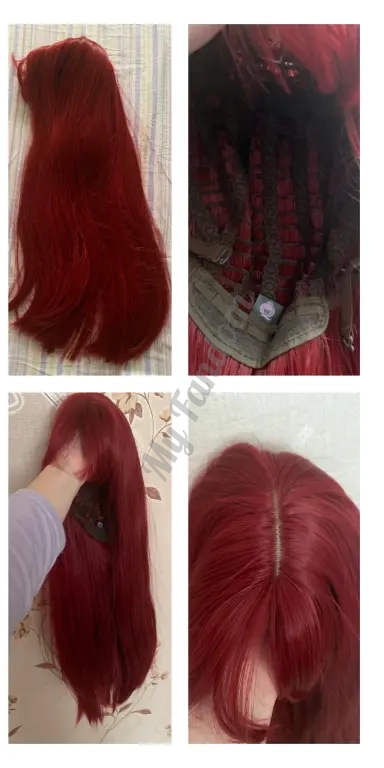Бордовый парик длинный косплей